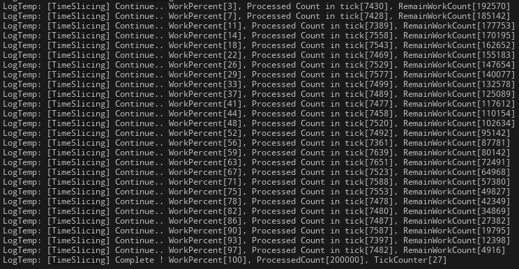 UE_LOG(LogTemp, Log, TEXT("[TimeSlicing] Complete ! WorkPercent[%d], ProcessedCount[%d], TickCounter[%d]"), (int32)WorkPercent, m_CurrentWorkCount, m_TickCounter);